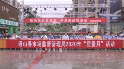 9月11日,通山县市场监管局在时代广场开展主题为“建设质量强国,决胜全面小康”的“质量月”宣传活动。