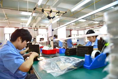 9月1日,赤壁市高新区中伙光谷产业园贵名电子有限公司车间,工人正在生产一批汽车配件。