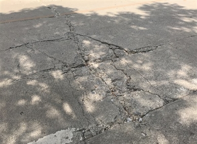当日上午10时半,记者来到咸安经济开发区,看到园区内的凤凰路,首尾皆有不同程度的地砖下陷、路面坑洼现象;路段中间尤为严重,路面裂出一条条线或一个个坑,拼凑出一张丑陋的画,附着在道路上。