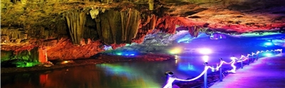 隐水洞内令人称奇的是景区有三种不同的游览方式:上游1/3乘船观光,中游1/3乘小火车游览,下游1/3步行,如此独特的游览方式堪为亚洲第一。预约电话:0715-2750888。