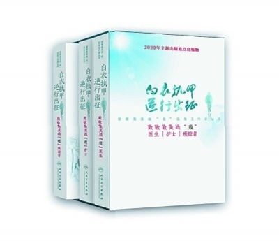 历史不能忘却,英雄应该铭记。记载他们的逆行,讲述他们的故事,再现他们的壮举,弘扬他们的精神,是出版界义不容辞的责任。在国家卫生健康委员会、中宣部出版局及社会各界的大力支持和帮助下,人民卫生出版社“白衣执甲逆行出征——致敬最美战‘疫’医务工作者”丛书,于2020年8月19日中国医师节前夕出版了。这套丛书,内容从数千篇全国一线战“疫”医务工作者征文中精选辑录而成。依书写人的身份不同,分为《致敬最美战“疫”医生》《致敬最美战“疫”护士》《致敬最美战“疫”疾控者》三个分册,共收录300余篇文章。