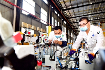 9月15日,位于咸安凤凰孵化园内的湖北敏实汽车零部件有限公司车间,工人们正在全力生产。
