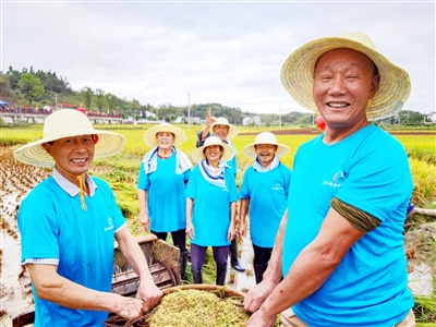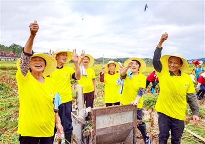 一粥一饭,当思来自不易。“颗粒归仓”割谷比赛环节,秋风秋雨中的浪口村加油声、呐喊声此起彼伏,红、黄、蓝三组选手拿着弯弯的镰刀,躬身在稻田里奋力收割。经过密切配合,在预定时间内,第一轮蓝队选手以收割208斤稻谷获胜;第二轮比赛黄队收割171斤,排名第一。