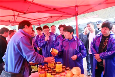 “特色农产品展销”精选全县各地最具代表性的农特产进行现场展示展销,与现场群众共享丰收喜悦。各展区内来自全县各乡镇参展的现代农业企业、合作社纷纷拿出自己的特色产品:小麻花、生态种植特色水果、纯手工制作水果罐头、香脆爽口的酱菜、特色中药材食品……各色农特产品琳琅满目,活动现场充满了喜庆丰收的味道。
