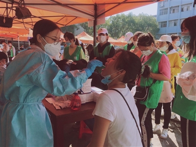 本报讯 记者周莹、通讯员戴逢胜报道:10月10日,咸宁职业技术学院迎大一新生开学第一天,市中心血站在该校内设立4个核酸检测点,为大一新生免费进行新冠肺炎核酸检测,确保校园安全。