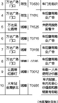 9月,市客管处组织开展市区城市客运行业明查暗访活动,对中心城区出租车和公交车文明经营服务行为、车辆环境卫生、公益广告宣传等方面开展明察暗访。现将明查暗访中发现的问题通报如下: