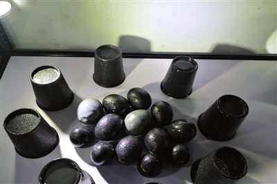 在卫汉装备科技有限公司产品展示厅,记者见到了一些黑乎乎的东西,仔细辨认才看出那是碟子、鸡蛋、一次性水杯、玻璃灯泡等等。