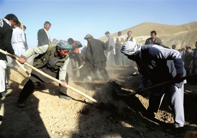 10月21日,在阿富汗喀布尔,人们为瓦尔达克省炸弹袭击事件的死难者举行葬礼。阿富汗政府官员20日证实,阿东部瓦尔达克省当天发生两起路边炸弹袭击事件,造成5名平民死亡,9人受伤。