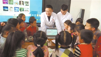 来自武汉大学中南医院的医护志愿者们给学生们上了一堂有关疫情防控自护及秋冬季预防流感的基础知识课,用亲和易懂的语言为孩子们进行了知识普及,还为留守儿童与群众进行了体检。随后,志愿者还与留守儿童进行了趣味互动游戏。