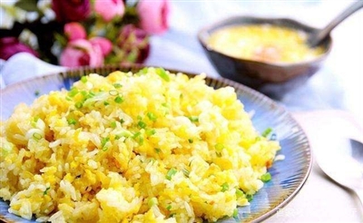 米饭一中碗,新做的或是上顿的剩饭都可,干爽为佳。新做米饭时,水面可滴两滴食用油,开锅后10—15分钟左右即可。加油后煮熟的饭光鲜爽滑有嚼劲,后边再炒饭的时候只需少许油即可,不会油腻。