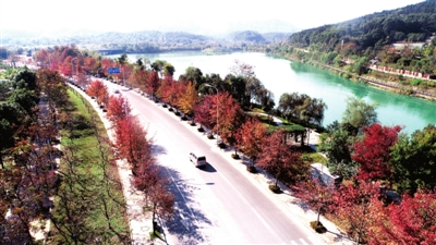 13日,淦河孟养浩路段在冬日暖阳的照耀下,两侧枫叶渐渐变红,美不胜收,远远望去犹如一幅色彩斑斓的油彩画。