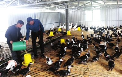 17日,通城县关刀镇高桥村东坳种养殖专业合作社,贫困户方代步在饲养即将销往外地的1000多只豚和土鸡。