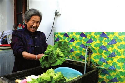 现在,山泉水源经过净化处理变成了自来水,通到了家家户户,清亮甘甜。洗菜、洗衣、洗手、洗澡方便得很,家里还添置了太阳能热水器、洗衣机。69岁的望湖村村民夏正官这辈子最幸福的事就是用上了自来水。