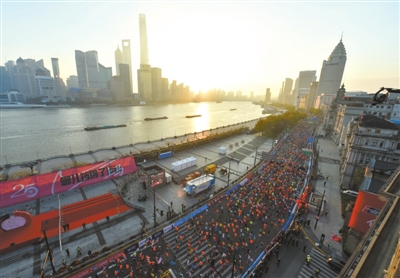 2020上海国际马拉松赛鸣枪开跑