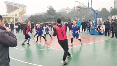 随后,记者又来到金叶体育馆,这里集聚了数十名打篮球的群众,欢声笑语更是让金叶体育馆充满了活力和人气。