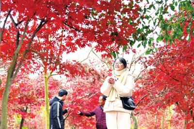 9日,通山县燕厦乡北冲村龙燕湾旅游区一期苗木基地,红枫艳丽,游人纷纷前来赏红叶。