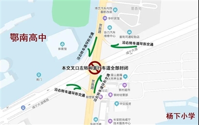 据了解,该交叉口左转和直行车道全部封闭,沿右转车道环形交通。在出行高峰期时,会出现一定程度的交通拥堵。
