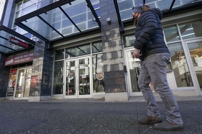 1月22日,一名行人从加拿大温哥华一家关门的商店前走过。加拿大独立企业联合会近日发布调查显示,受新冠疫情影响,加拿大有181000名小企业经营者正在“认真考虑”永久关闭企业。