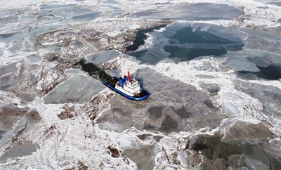 2021年1月12日,在位于河北唐山湾的中国石油冀东油田南堡1号人工岛码头,面对海面上越发严重的冰情,冀东油田“立通拖2”守护船正在破冰,以畅通码头航道和泊位,为船舶正常航行创造条件。