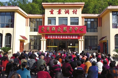 赤壁市纪委监委组织开展“普纪普法走基层”活动,为群众送纪法知识上门。