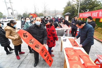 当日,市委宣传部组织市诗词楹联学会、市青年书法家协会的5名书法家来到该社区,开展春节送春联进社区、进家庭暨疫情防控宣传活动。