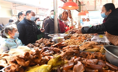 昨日,记者在中百仓储咸宁店、华信农贸市场、亿丰农贸批发市场、中百超市咸安店等地看到,不少市民在选购年货。