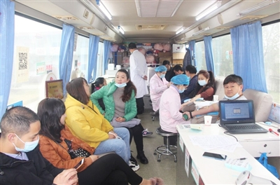 上午9时许,记者在园区看到,一辆采血车大巴停在大门口,市中心血站工作人员正在紧张进行填表登记、化验、量血压待等工作,前来献血者接踵而至,络绎不绝......