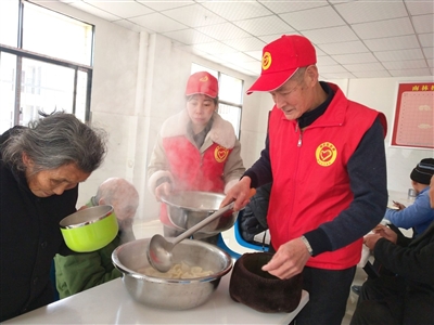 2月28日,慈口福利院内,到处都是身穿红色小马甲的身影。邓福凡忙着整理房间,同行的通山县义工协会的志愿者们有的烧水为老人泡脚,有的为老人修剪头发,有的在厨房为老人准备丰盛的营养餐……活动结束时,很多老人流泪相送。