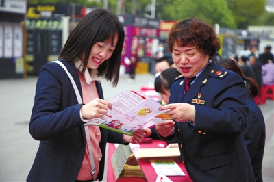 “请大家一定要警惕真品和假冒品的商标区别,购买的时候一定要擦亮眼睛看……”活动现场,来自该县市场监管、司法、住建等相关职能部门设立咨询台,准备通俗易懂的宣传资料、宣传小礼品等,免费赠送给市民,向他们宣传《消费者权益保护法》、消费安全知识、食品药品安全常识等各类法规和知识,同时现场受理消费者咨询、投诉。县市场监督管理局则在现场设置专门展位,教授市民如何预防和识别假冒伪劣产品,现场群众络绎不绝。