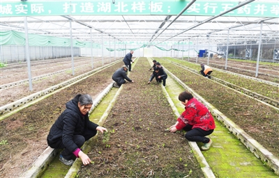 17日,湖北(通城)瑶乡御草药业公司药园基地,当地村民在培育中草药材。