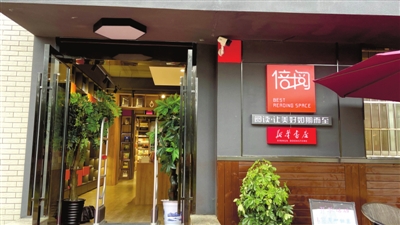 门口深灰色的背景墙上,橘色的“倍阅”logo简洁醒目。一句“阅读,让美好如期而至”的宣传语,带来满满文艺气息。