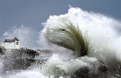 四面夹击 海边小屋遭到强风巨浪