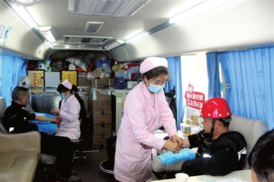 当天上午8时许,两辆采血车停靠在公司院内大门口处,只见市中心血站工作人员正紧张布置采血工作,下班员工陆续来到献血点,填表、注册,检测、献血。采血工作人员忙碌不停,殷红的血液汩汩注入献血袋,一袋袋热血源源不断被放进冷藏箱……