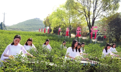 活动现场,歌伴舞《茶香中国》、舞蹈《茶道》、古筝演奏《茶韵》、旗袍秀《采薇》,让人沉浸在优美的茶香之中,品味幽香的茶韵。茶园里,茶农们正忙着采摘明前茶;场外,7家参展的茶企正在卖力吆喝,推销自家产品。