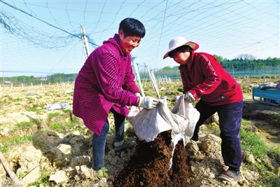 3月24日,赤壁市神山镇莲塘村吊瓜基地,当地农户正在基地施有机基肥。去年,该镇在莲塘村试种吊瓜80余亩,当年即获得效益。今年,该村流转村民的抛荒地60余亩扩大种植规模,预计亩产值可达3000元,不仅有效利用了土地,同时也增加了农民的收入。