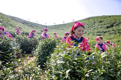 茶树,也成了青山人的“摇钱树”。周边贫困群众通过茶地开挖、茶苗培育、茶树种养、茶叶采摘等各环节,实现就近务工。