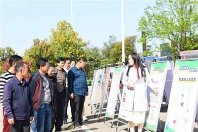 3月25日,嘉鱼县渡普镇烟墩村,村民在参观全民禁毒展板。当日,该镇开展“平安法治建设”宣传活动,邀请嘉鱼县法律顾问讲解治安处罚条例和《民法典》,向村民发放宣传资料,让法律入脑入心。