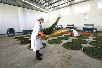 走进同太和红茶基地制茶车间,工人开足马力加工茶叶,茶叶加工生产线也是忙得不可开交,摊青、杀青、炒干、烘干、提香……经过多道工序处理后,成品茶叶不断“出锅”。同太和红茶基地总经理刘城介绍:“今年基地可以产出5000斤干茶,产值将达300万元,采茶季能为当地村民人平增收8000-15000元。下一步,茶园将产业与旅游相结合,让茶园特色游成为春日旅游的一大亮点,带动当地贫困居民增收,助力乡村振兴。”