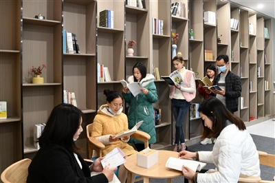 日前,通城县人才家园内,几名青年人才正在“人才公寓”阅览室学习。3月8日,该县人才家园开园,首批10名人才代表获得公寓入住钥匙。这是我市首个人才家园,包括人才公寓、人才服务中心、人才创智中心、人才培训中心、人才休闲中心。项目总投资1亿元,可直接“拎包入住”。 刘建平 摄(影像咸宁)