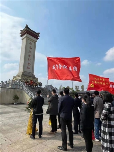 本报讯 通讯员阚彪报道:4月9日,咸宁金投集团组织全体党员干部赴鄂南烈士陵园开展缅怀先烈党史学习教育活动,加强对干部职工继承革命先烈的光荣传统,弘扬爱国主义精神信仰教育。