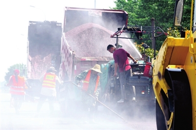 5月1日,G351台小线嘉鱼县潘家湾至四邑段,市安达公路养护公司工人抢抓晴好天气摊铺彩色沥青路面,赶在雨季来临前完工。该路段全长25.8公里,路面美化升级后,将大大提升通行能力。