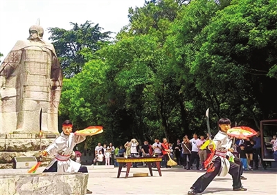 赤壁市文化和旅游局组织“红色文艺轻骑兵”小分队进景区演出,富有赤壁文化特色的节目吸引了众多游客的参与互动。该市文化旅游文明志愿服务队身着红马甲,为游客测体温、发口罩,维持秩序,文明之花盛开在游客密集、道路险急、游客需要的地方。