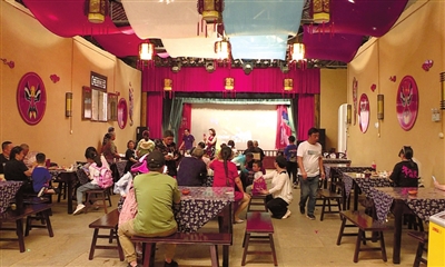 羊楼洞戏院游客们在茶馆休息时,观赏着台上精彩的节目,时光也仿佛回到了那个充满故事的年代。