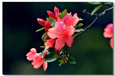 一次次,我靠近杜鹃,想发现她千姿百态的妩媚。有一些枝影横斜,是开给少女们的,倚花而立,便是天香国色;有一些七拱八翘,是开给小孩们花下捉迷藏的;还有一些呢?张开了粉胸是抚慰失意者的。一些打着骨朵儿的,分明把满腹欢喜藏着,直要等到喜不自禁时才与有缘人相逢。她们是开给后来者的。而那些光秃秃的干枝上盛开的花朵,其实是与我相约了数载,恰巧此刻相亲相拥。叫我如何不珍惜呢!