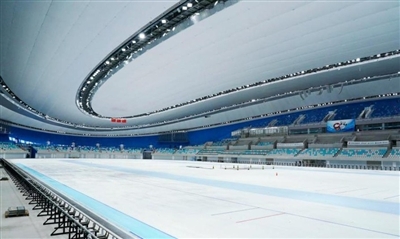 5月8日,北京冬奥会标志性场馆国家速滑馆“冰丝带”开展首次全冰面制冰。规模约1.2万平方米的场馆全冰面成功亮相。