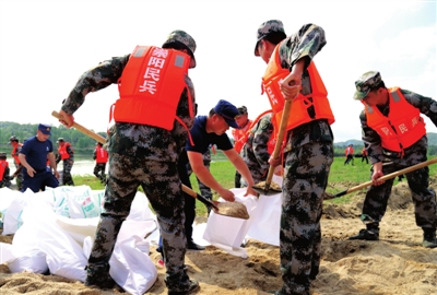 “河堤决口抢堵、排除险情”:在发现胡家河堤决口后,人武部(民兵分队)县防汛抢险突击队、白霓镇小港村突击队等反应迅速,在两小时内将小港村胡家河堤5米决口抢堵修复好。