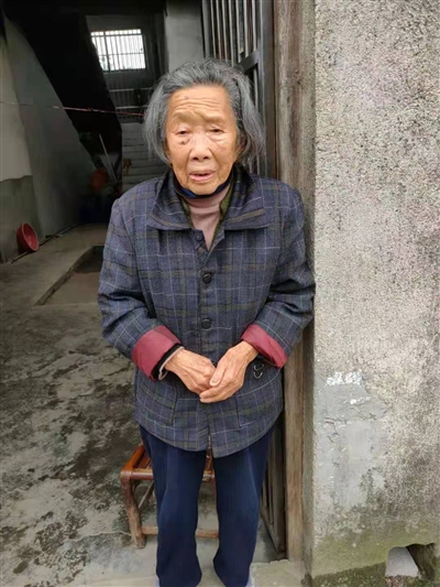采访时,老人倚在平顶房门边晒太阳,小儿子丁旺良正骑摩托车从镇上赶回。她年纪大了,耳背,不爱和生人讲话。我们采访的时候,她几乎不说话,却亲自去房里搬凳椅让客人坐并轻轻地笑两声。我们通过采访她的儿子和亲属、邻居才慢慢了解到这个百岁老人的点滴故事。