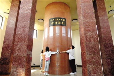 5月17日,记者探访中国大地原点。该原点位于陕西省泾阳县,由主体建筑、中心标志、测量仪器台和投影台等组成,原点中心位于主体建筑地下室花岗岩坐标顶面,以镶嵌的球形玛瑙为标志。