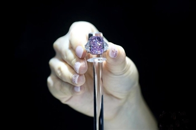 5月20日,香港佳士得呈献一枚名为TheSakura的艳彩紫粉红色/内无瑕TYPEIIA钻石戒指,重达15.81克拉,是拍卖史上最大的艳彩紫粉红钻石,估价为1.95亿港元至3亿港元。