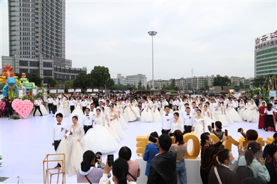 5月20日上午,“最美崇阳壹生守护”2021崇阳县首届集体婚礼在大集广场举行,在现场观众的见证下,崇阳县60对新人共同立下爱的誓言。